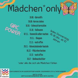 | Donnerstag | 16:00 – 18:00 Uhr | Only Girls (JUZ Wabern) * |
