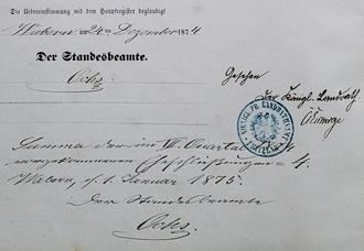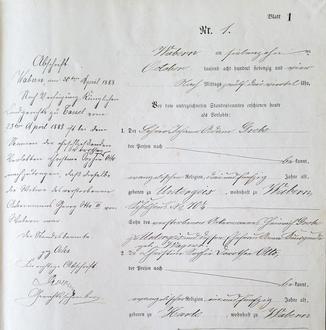 Der erste Heiratsantrag beim Waberner Standesamt vom 17. Oktober 1874