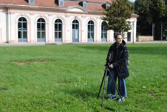 Die Künstlerin im Waberner Schlosspark, wo ihr Urgroßvater Julius Naschelsky im Jahr 1933 misshandelt und gefoltert wurde (Fotografie: Thomas Schattner)