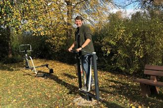 Jürgen Sapara vom Dorfverein Rommershausen testet den neuen Fitnessparcours.