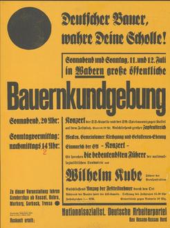 Das Plakat zur Bauernkundgebung in Wabern 1931 (HStAM, Slg. 16, Nr. c 26, ein zweites Exemplar befindet sich in: HStAM, Best. LA FZ 180, Nr. 1576)