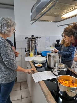 Gemeinsam bereiteten die Teilnehmerinnen ein buntes Menü zu: einen Kürbis-Zucchini-Auflauf, Apfel-Walnuss-Chutney, duftenden Basmatireis und ein Gemüse-Curry mit Brokkoli und Möhren.