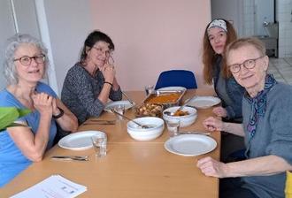 Beim anschließenden gemeinsamen Mittagessen wurde nicht nur geschlemmt, sondern auch gelacht, gestaunt und über die wohltuende Wirkung der ayurvedischen Küche gesprochen.