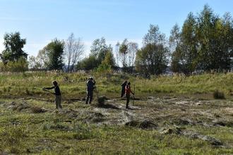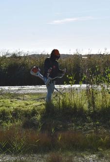Einsatz des Freischneiders auf schwer zugänglicher Brutinsel © LPV Schwalm-Eder e.V.