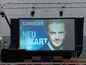 Er macht auch in Wabern halt; in einer Mehrzweckhalle, die seinesgleichen sucht…J Florian Schroeder sucht mit seinen markanten Settings zu Beginn seines Auftritts Kontakt zum Publikum. Diese schmunzeln nach seinen ersten Sätzen, die Wabern ins ländliche Niemandsland der kulturellen Welt versetzt. Die Deko, die Bühne, der Umkleideraum, alles fragwürdig… In seinem späteren Podcast, den er einige Tage nach dem Auftritt in Wabern, gemeinsam mit seinem Partner Somuncu (gerne zum Nachhören auf: podcasts.apple.com/schroeder-somuncu) aufnimmt, teilt er mit, dass er die ZuschauerInnen in Wabern zunächst sehr provoziert hat. Er aber trotzdem auf ein interessiertes und wohlwollendes Publikum getroffen ist, dass es ihm zu keiner Zeit übelgenommen hat, dass er auf seine spezielle Weise erstmal in der Halle ankommen musste….