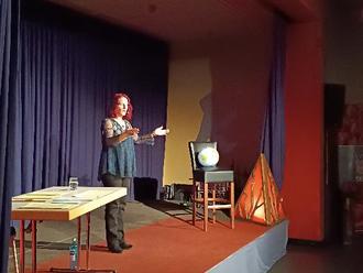 Im Blick dabei den Ball der Weltkugel, der auf dem Barhocker beim Auftritt Platz nehmen durfte. Dieser bot die bildliche Verbindung, dass unser Handeln auch immer global zu betrachten und zugleich soziologisch ineinander verwoben sei.