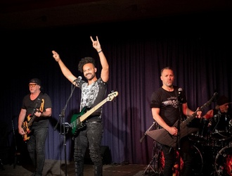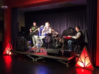 Von links: Tim Paltinat an der Bassgitarre, Mike Gerhold (Gesang und Gitarre), André Wollner am Keyboard und im Background am Schlagzeug Dominik Lang.