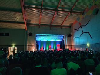 Da es vor der Show bereits ein Angebot für „Meet&Greet“ gab, wurden kurzerhand die Gäste in den Kulturraum im Bahnhof gefahren, um dort persönlich in einer Kleingruppe Mario Basler in Augenschein zu nehmen und ihm Fragen stellen zu können. Im Anschluss daran ging es mit dem eingerichteten Shuttle-Bus wieder zurück in die Mehrzweckhalle, dort begann der Auftritt für alle anwesenden Gäste.