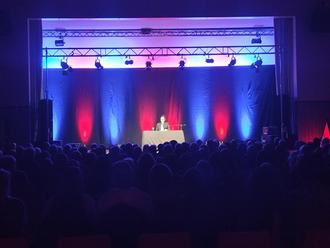 „Ja, hallo erstmal. Ich weiß gar nicht, ob Sie´s wussten, aber…“ Mit diesem wiederkehrenden berühmten Satz startete er nach der Begrüßung von Alexandra Vogt-Schulz in den Abend bei einer voll besetzten Mehrzweckhalle.