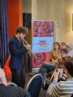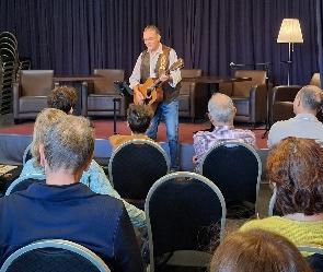 Für musikalische Abwechslung sorgte Gerhard Bathe mit seiner Gitarre. Das Publikum sang begeistert mit. Auch Dino Samson aus Uttershausen konnte mit seinem Trompetensolo für stimmungsvolle Abwechslung sorgen und Literatur und Musik verbinden.