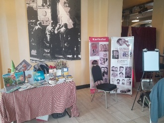 Neben all der literarischen und musikalischen Darbietung konnte auch der Künstler Xiaoming Son aus Kassel begeistern. Er erstellte in rasantem Tempo Schnellportraits, die die Besucher begeistert als Andenken an einen gelungenen Literaturtag mit nach Hause nahmen.