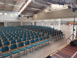In diesem Jahr wurden zwei Locations für die Darbietungen vorbereitet. Der Kulturraum im Bahnhof und die Mehrzweckhalle. Bei einem Zuschauerkontingent, das die Anzahl von 120 BesucherInnen überschreitet, ziehen wir sozusagen in die Mehrzweckhalle um. Dies bot sich für die Events mit TV-Star Claudia Michelsen und bei Kabarettist Rüdiger Hoffmann an, da die Vorverkaufszahlen dies in kurzer Zeit nach dem Ticketverkaufsstart abzeichneten. Die Vorbereitungen liefen auf Hochtouren, so dass beide Locations für viele Gäste gut bespielbar sein konnten.