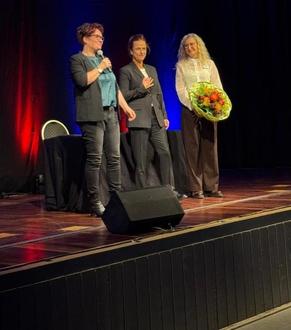 Frauenbeauftragte Gerlinde Eckhardt begrüßte gemeinsam mit Moderatorin Alexandra Vogt-Schulz die beliebte Schauspielerin Claudia Michelsen und erläuterten das Interesse an der Lesung über das Leben von Marlene Dietrich, die als einfache Frau aus Berlin eine beachtliche Hollywoodkarriere erreichte und mit Mut, Fleiß und Verstand auch in bewegten politischen Zeiten ihre Positionen öffentlich vertrat.