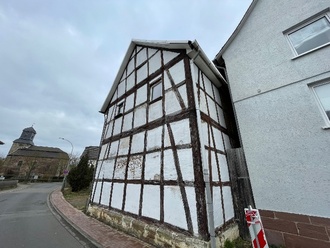 Nach Abstimmungen und Vorbereitungen konnte nun gemeinsam mit der Bauaufsicht in Homberg (Efze) und der Zimmerei Bauer aus Zennern eine fachgerechte Sicherung des Giebels vorgenommen werden. Die Arbeiten wurden durch einen Statiker begleitet, der die notwendigen Maßnahmen überprüfte und die Standsicherheit bestätigte.