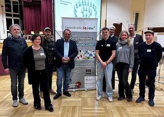 Bereits in seiner Begrüßung nahm Landrat Winfried Becker Bezug auf den aktuellen „Demokratiemonitor der Bertelsmann-Stiftung“. Dieser komme zu dem Schluss, dass sich Misstrauen verstärke und gegenseitig begünstige, zugleich aber zeige, dass Ver-trauen immer mit Nähe und unmittelbarer Erfahrung verbunden sei. Er schloss sein Grußwort mit den Worten: „Sie alle treten hier im besten Sinne aktiv für unsere Demokratie ein. Dafür bin ich Ihnen sehr dankbar. Bleiben Sie im Dialog und setzen Sie Ihre Arbeit für unsere Demokratie im Schwalm-Eder-Kreis und darüber hinaus bitte fort.“