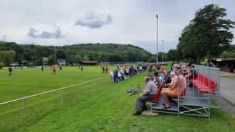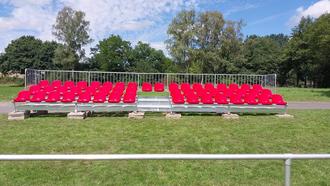 Die mobile Tribüne im ersten Einsatz auf dem Sportplatz. Quelle Schwalm-Aue