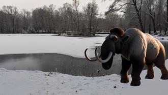 In der winterlichen Eiszeit-Landschaft an der Eder waren auch Mammuts anzutreffen. (Bild basierend auf einem Foto von Marianne Gabriel)