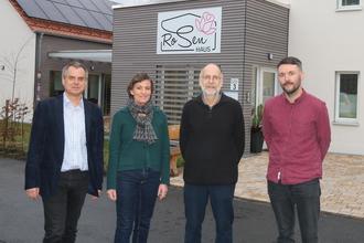Sie laden in die Ausstellung ein (v.l.): Pfarrer Dierk Glitzenhirn (Altenhilfe Treysa) und Regionalmanagerin Sonja Pauly (Leader-Region Schwalm-Aue); Architekt Johannes Biskamp und Stadtplaner Martin Hering informierten über die kostenlose architektonische Erstberatung.