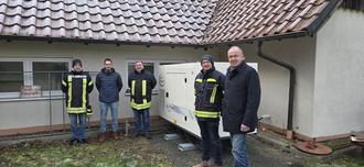 Neben der Beschaffung der Notstromaggregate, war auch die Umrüstung der einzelnen Liegenschaften notwendig. Die Installationsarbeiten sind abgeschlossen und erste Testläufe wurden durchgeführt. Sowohl die Beschaffung der Aggregate als auch die Installationsarbeiten wurden finanziell vom Schwalm-Eder-Kreis unterstützt. Die erste Inbetriebnahme erfolgte im Feuerwehrhaus in Falkenberg. Gemeinsam mit Wehrführer Ralf Faust, Jonas Westermann und Sven Nietschke, nahmen Bauamtsleiter Tim Zier und Bürgermeister Claus Steinmetz das Notstromaggregat in Betrieb und überprüften die Funktionsfähigkeit.