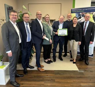 Bildunterschrift von links: Thomas Ross - Vorstand Kreissparkasse, Landrat Winfried Becker, Michael von Bredow - Vorstand Kreissparkasse, Michaela Adler - Koordinatorin Ambulanter Kinder- u. Jugendhospizdienst in Fritzlar, Michael Kreutzmann - Kreistagsvorsitzender, Heinz Rohde - Ambulanter Kinder- u. Jugendhospizdienst in Fritzlar, Brigitta Priester - - Koordinatorin Ambulanter Kinder- u. Jugendhospizdienst in Fritzlar, Jürgen Kaufmann - Erster Kreisbeigeordneter