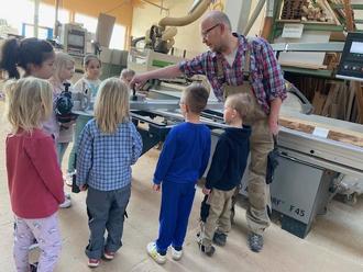 Im Rahmen unserer Draußentage kam von den Kindern der Wunsch, die Schreinerei Voigt in Waldeck zu besuchen.