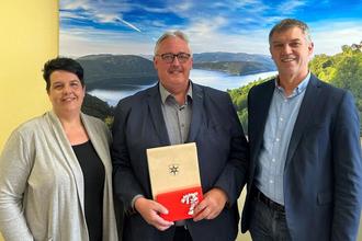 v.l.n.r: Personalratsvorsitzende Jorien Oehl, Jubilar Hartmut Momberg und Bürgermeister Jürgen Vollbracht