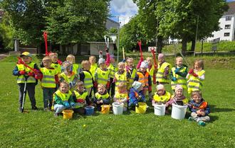 Die Kinder waren froh, dass sie all den Müll auf ihrem Weg einsammeln konnten und so hoffentlich Tiere und die Natur schützen können. Die Kinder belohnten sich nach getaner Arbeit mit einem Besuch auf dem fantastischen Spielplatz am Sportplatz und im Garten.