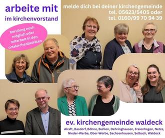 Kirchenvorstand: AnsprechpartnerInnen Kirsten Zölzer, Tel: 0160/6121783 und Martin Bremmer, Tel: 05623/1089