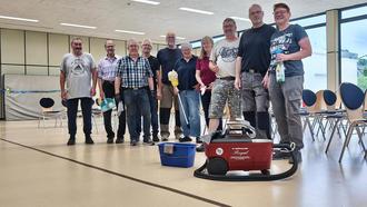 Genau das sagten sich zehn Bürgerinnen und Bürger aus Höringhausen, die sich bei der Mitmachaktion „Bürgerhaus“ einfanden, um für das Dorf Hand anzulegen. Auf dem Plan stand unter anderem die Generalreinigung von Tischen und Stühlen im Bürgerhaus. Insbesondere die Tischgestelle und Tischunterseiten sowie die Stuhlpolster und Stuhlgestelle waren teils stark verunreinigt. Man kennt es: Bei Veranstaltungen fällt im Trubel eine Flasche Limo um, der süße Saft läuft vom Tisch herunter am Tischbein entlang oder tröpfelt auf das Stuhlpolster. Bei der Veranstaltung geht das Malheur im Eifer des Gefechts unter, beim anschließenden Aufräumen des Saals fällt es vielleicht nicht auf. Der Saal wird vielfältig und oft genutzt. Die fleißigen Helfer mussten feststellen, dass im Laufe der Zeit da ganz schön viel Schmutz am Mobiliar entstehen kann.