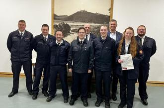 Ein besonderer Moment war die Beförderung von Isabell Pfeil zur Feuerwehrfrau, nachdem sie erfolgreich den Grundlehrgang absolviert hat.