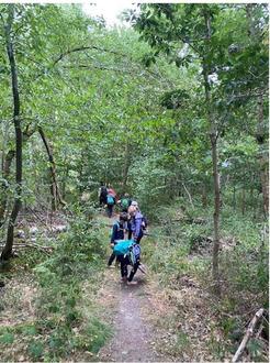 Die Kinder haben viele verschiedene Wege durch den Nationalpark gefunden. Mal waren sie sehr schmal oder sehr von Pflanzen bewachsen. Umgefallene oder stark bemooste Äste und Stämme wurden entdeckt. Die Kinder konnten einen belaubten Waldweg barfuß begehen und erfühlen. Er war manchmal kalt, hart, pieksig, warm und weich. Auch viele Tierarten und Pflanzen konnten die Kinder entdecken und mit einer Lupe beobachten, wie z.B. Grashüpfer, Spinnen, Asseln und Pflanzen wie die Fingerhutpflanze. Alisa erklärte aber, dass der Fingerhut giftig ist und es im Wald immer mal wieder Pflanzen gibt, die giftig sind und erklärte z.B. auch, dass die Grashüpfer mit ihren Hinterbeinen die Geräusche machen.