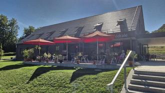 Das Café bietet selbstgebackenen Kuchen und Kaffeespezialitäten an. Von der Sonnenterrasse aus hat man einen wunderschönen Blick auf den Edersee und das Waldecker Schloss.