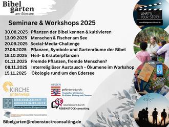 Ob Sie ein einzelnes Seminar besuchen oder sich auf die ganze Reihe einlassen möchten: Sie sind herzlich willkommen bei unseren Bibelgarten-Guide-Seminaren auf der Halbinsel Scheid am Edersee! Tauchen Sie ein in die faszinierende Welt des Gartens und entdecken Sie überraschende Verbindungen zwischen biblischen Geschichten, Natur und heutiger Lebensrealität.