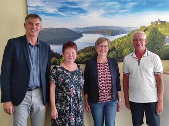 v.l.n.r.: Bürgermeister Jürgen Vollbracht, Katrin Manoury (stellv. Leitung Kindergarten Sachsenhausen), Elisabeth Mewes und Christoph Flamme (Vertreter des Personalrates)