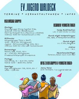 Aktuelle Angebote der Jugendarbeit unter www.ev-jugend-eder.de. Kontakt: Jugendarbeiterin Jennifer Heise, jennifer.heise@ekkw.de, Tel: 0174/3474642 oder Pfarrerin Nobiling, pfarramt.sachsenhausen@ekkw.de, Tel: 05636-223.