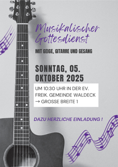 | 10.30 Uhr | Musikalischer Gottesdienst, zeitgleich Kindergottesdienst |