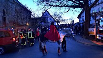 Heute leuchten die Laternen, wie das Licht von tausend Sternen …. so war es am Laternenumzug in Waldeck zu hören und zu sehen. Während einer Andacht lernten die Kinder mit ihren Familien die Laterne Lumina kennen und erfuhren, dass „wenn wir zusammenstehen und uns gegenseitig helfen, wir heller leuchten als jemals zuvor“. Beim gemeinsamen Singen der Laternenlieder in der Kirche ließen die Kindergartenkinder bei ihrem „Auftritt“ den Raum mit Laternen, Leuchtstäben und bunten Tüchern wunderschön und bunt erstrahlen. Und nach dem Verteilen einer „Wegzehrung“ – den Martinsgänsen, ging es hinaus in die Dunkelheit. Aber es blieb nicht lange dunkel. Die vielen Laternen in allen Farben und Formen leuchteten durch die Nacht und erhellten uns den Weg. Begleitet wurden wir von der Freiwilligen Feuerwehr, die uns den Weg sicherte und natürlich von Sankt Martin mit seinem roten Mantel auf dem Pferd.