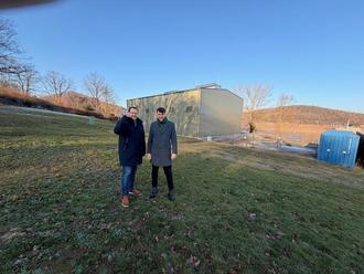 Auf Scheid: Bürgermeister Westmeier und Bürgermeister Havel am vorgesehenen Standort des im Frühjahr geplanten Funkmastes, der die Mobilfunkversorgung in Scheid, Rehbach und Bringhausen nachhaltig und verlässlich stärken soll. (von links)