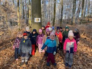 Weitere Informationen und Wissen über den Wald sind z.B. das Nadelbäume im Winter ihre Nadeln nicht verlieren. Auch die Bäume schützen sich. Sie haben eine Rinde. Wir haben die Buche und die Eiche erkundet und die Bäume angefasst. Die Eiche fühlt sich wärmer an, weil ihre Rinde dicker und härter ist.