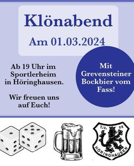 Der Vorstand lädt seit Beginn der Coronapandemie zum ersten Klönabend ins Sportlerheim Höringhausen ein. In gemütlicher Gesellschaft möchten wir zusammen mit Mitgliedern, Sponsoren und Gästen ein paar nette Stunden verbringen.