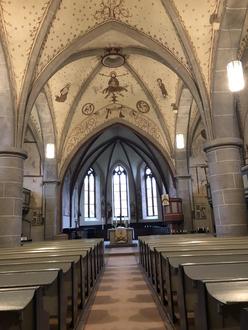 Im Chor und im Langhaus wurden 1934 gotische Wandmalereien freigelegt und restauriert, deren Bedeutung Vera Leuschner erläuterte.