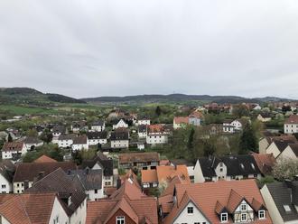 Der Kirchturm bekam seine heutige Form in den Jahren 1711 bis 1738 und konnte erklommen werden. Ein Großteil der Gruppe nutzt die Gelegenheit, um nach der Anstrengung des steilen Aufstiegs einen Rundumblick zu genießen.