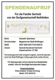 Die „Feldküche Team Nothfelden“ hilft der Familie Gerhold ebenfalls und wird unterstützt von der Bäckerei Schäfer aus Zierenberg, Volkers Wurstekammer und dem Dorfmarkt aus Oberelsungen.