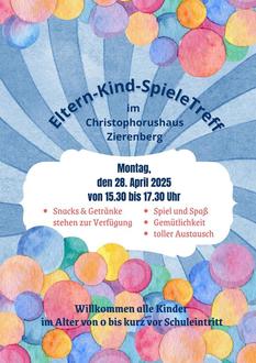 ab 15.30 Uhr Eltern-Kind-SpieleTreff im Christophorushaus.