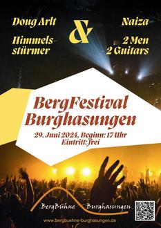 Darüber hinaus glänzt das „Bergfestival“ nicht nur mit Musik allein. „Kulinarische Spezialitäten wie der BergBühnen-Teller - Ahle Wurscht + Schmalzenbrot + Gurke - oder ungewöhnliche Burger wie der Mac & Cheese Burger, Pulled Pork Burger oder Currywurst-Burger lassen keinen Zweifel daran, dass dieses Festival alle Sinne ansprechen wird“, so Markus Ring vom Verein „Kultur am Berg“. Besonderer Service der Premiere in Burghasungen: Der Eintritt ist kostenfrei.