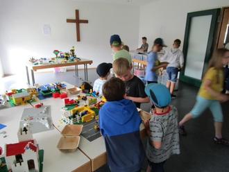 Auch Lieder und biblische Geschichten haben jeden Tag für eine Herausforderung gesorgt. So sind aus den bunten Bausteinen die Festung Jerusalem entstanden, der Tempel des Salomo mit Bundeslade und Allerheiligstem, der Palast in Babylon mit der Schrift an der Wand, der Stall in dem das Jesuskind geboren wurde und das Stadttor Jerusalems, durch das Jesus auf dem Esel unter dem Jubel der Menschen einzog.