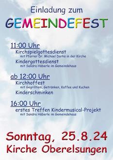 11 Uhr Kirchspielgottesdienst zum Gemeindefest in Oberelsungen mit Pfarrer Michael Dorhs und Lektorin Sandra Häberle. Im Anschluss wird zum Grillen eingeladen.