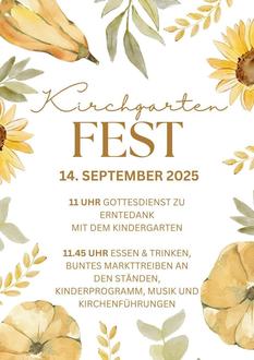 Wir feiern Erntedank. Wir beginnen den Tag mit einem Taufgottesdienst gemeinsam mit der KiTa Dörnberg um 11 Uhr im Kirchgarten. Im Anschluss startet das Markttreiben. Es gibt Stände mit Essen und Getränken, vielfältige Aktionen für Kinder zum Basteln und Mitmachen, Stände mit regionalen Köstlichkeiten und unterschiedlichem Kunsthandwerk. Außerdem werden mehrmals Kirchenführungen angeboten, die den tollen Innenraum der Kirche zum Leben erwecken. Herzliche Einladung zu unserem Fest.“