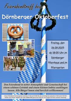 Dieses Mal möchten die Initiatoren des Feierabendtreffs einen gemütlichen Abend unter dem kulinarischen Motto „Dörnberger Oktoberfest“ verbringen.