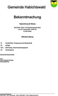 des Sozial- Kultur- und Tourismusausschusses vom 29. Januar 2024, 19:00 Uhr im DGH Ehlen